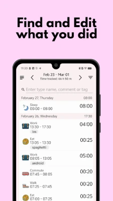- Timesheet work hours tracker. Whether you're a business person with a packed daily routine, an athlete tracking every minute, a freelancer juggling multiple projects, or simply curious about your time distribution, this simple time management app is your ideal partner.
