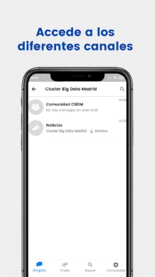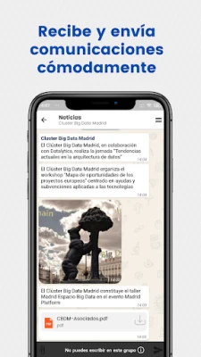 Con la aplicación de Tellfy Cluster Big Data Madrid tendrás acceso al espacio de comunicación privado para asociados, donde recibirás comunicaciones del Cluster y podrás contactar también con otros socios desde la aplicación.