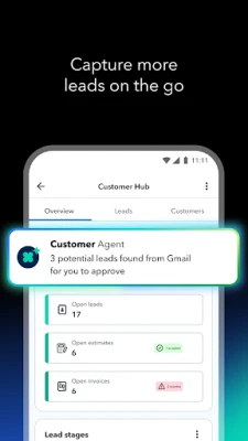 Customer Hub and Intuit AI agents work together to surface qualified leads from your emails, and your written and recorded voice notes will be included in auto-generated estimates for you to review, edit, and send from your mobile device.